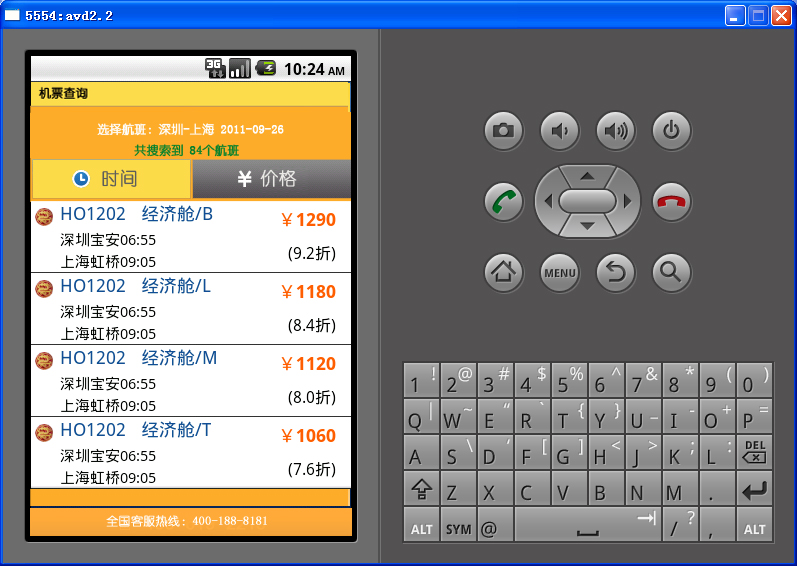 機票查詢結(jié)果