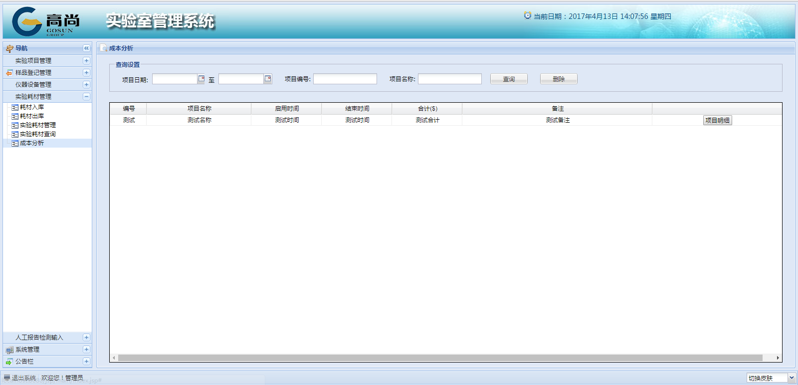 1、實(shí)驗(yàn)室管理系統(tǒng)集數(shù)據(jù)查詢、實(shí)驗(yàn)項(xiàng)目、儀器設(shè)備、易耗品目錄、易耗品出入庫(kù)記錄、儀器借用、人員情況、儀器標(biāo)定等,并且都有查詢功能,報(bào)表打印功能等。